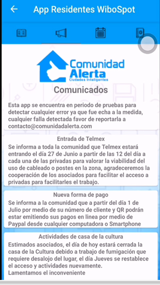 Permite consultar adeudo en tiempo real y hacer pagos, reportes de vigilancia, reservación de espacios públicos y registro de visitas con ingreso por medio de QR.
